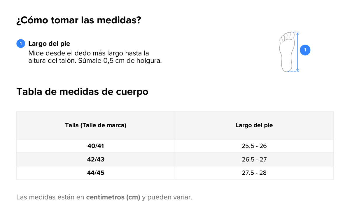 GUIA DE TALLES: 40/41 – 25 cm42/43 – 26 cm44/45 – 28 cm