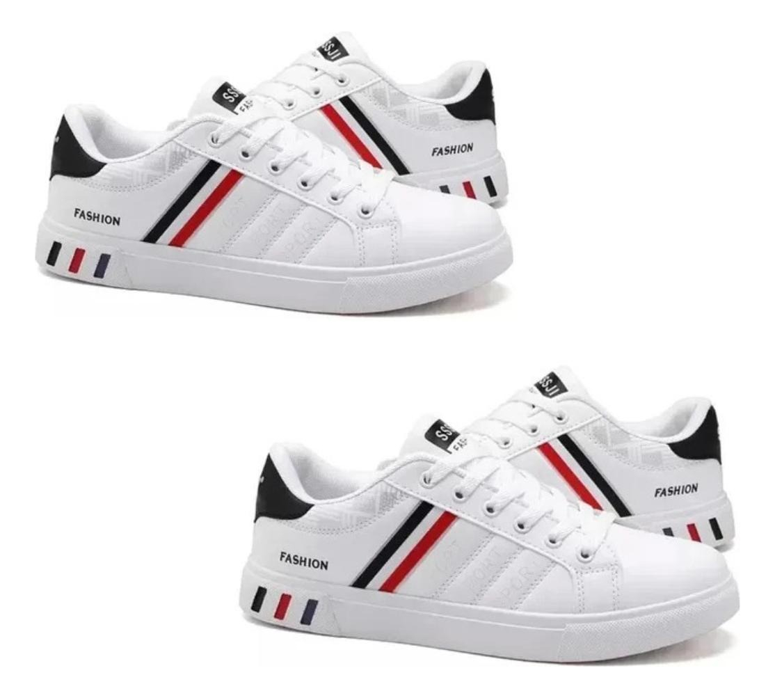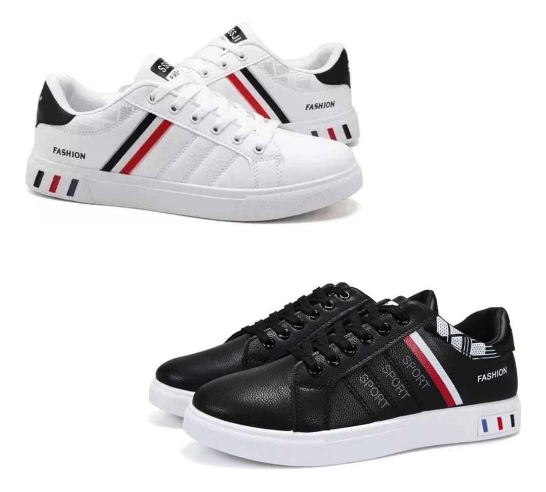2 PARES DE CHAMPIONESDescubre nuestro nuevo modelo de Zapatillas Estilo Skate para Hombre, confeccionadas con PU de alta calidad y vulcanizadas para brindarte comodidad y estilo a la moda. **Características:**– **Tamaño Adecuado:** Recomendamos elegir una talla un poco más grande debido al ajuste ajustado. Además, el patrón de camuflaje impreso en la parte posterior realza…