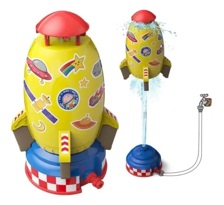 Gran regalo de agua de verano: el juguete rociador de cohete es un regalo divertido para niños a partir de 3 años para disfrutar de la diversión acuática en verano con tus familias y mascotas. Un juguete innovador que mantiene a los niños comprometidos perfectos para la playa, la piscina y la diversión en el patio trasero que es una delicia para todas las edades.