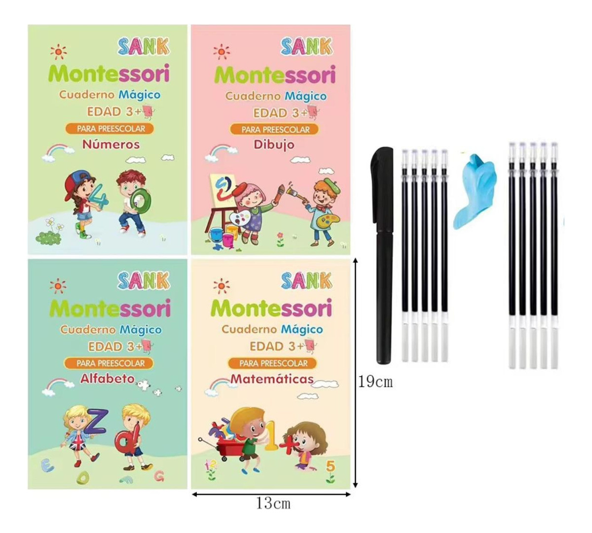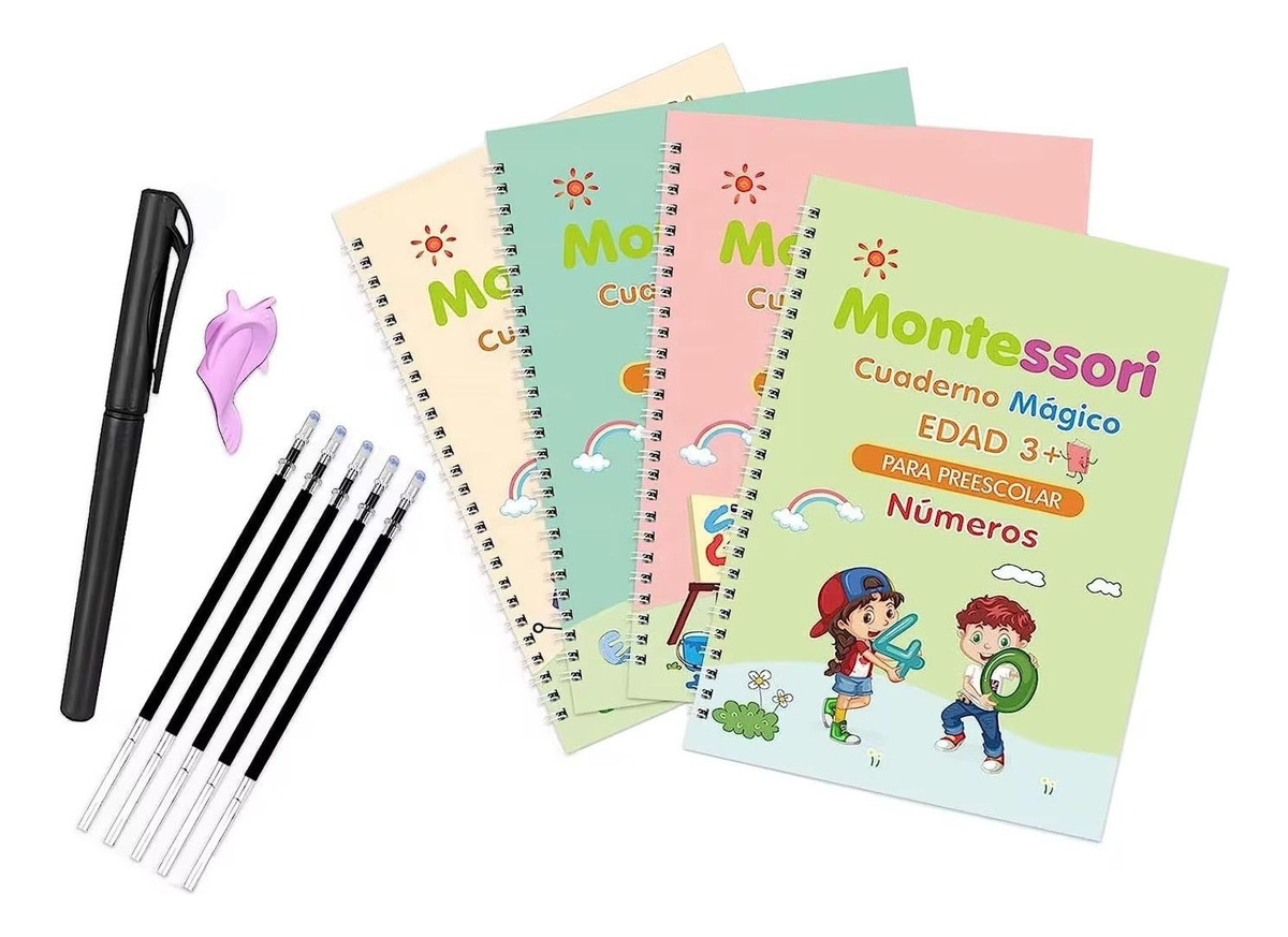 La tinta mágica que incluye el set se borra con el tiempo, lo que hace que los libros sean reutilizables y perfectos para que los niños puedan practicar una y otra vez. Además, el set viene con una lapicera especial y 9 repuestos de tinta, garantizando que siempre tengan las herramientas necesarias.