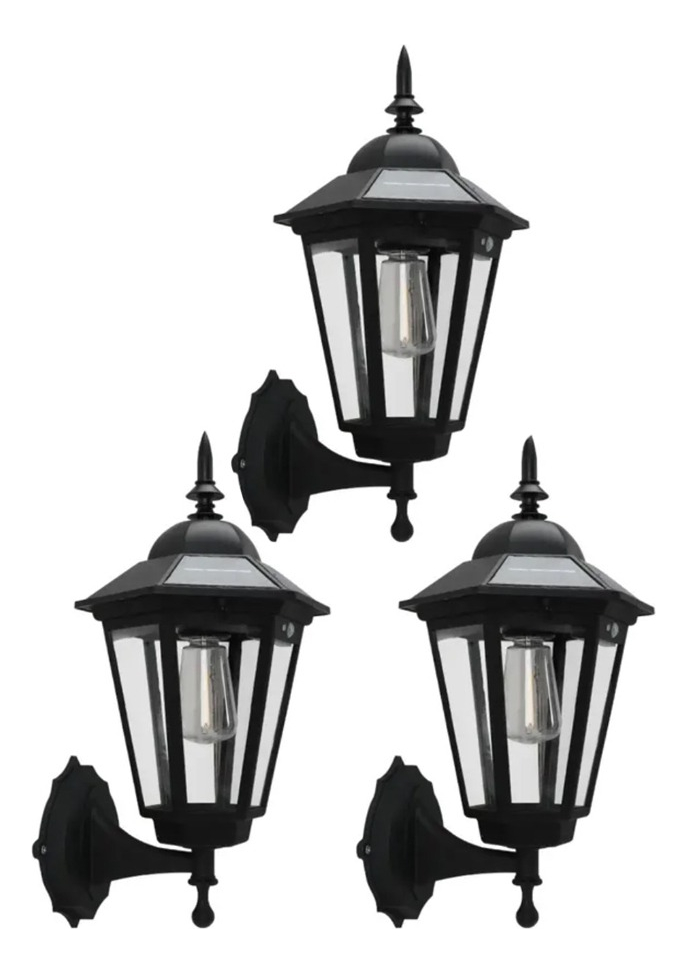 Foco Solar Farol Colonial Led Kit X3 Unidades Calidad