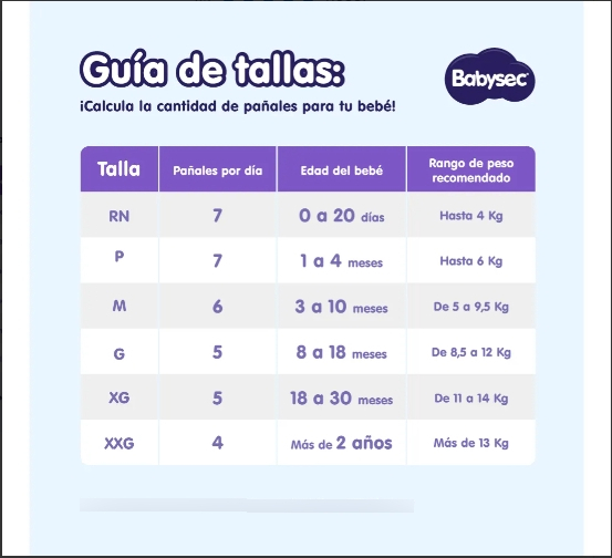 * Alta absorción para mantener al bebé seco.