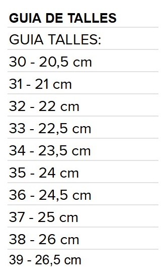 – Adultos: Se recomienda comprar la bota siempre UN número por encima del tamaño habitual del calzado.