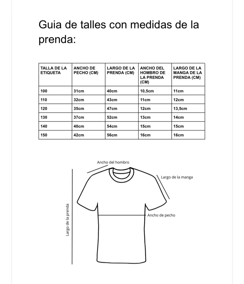 | Talle | 100, 110, 120, 130, 140, 150 |
