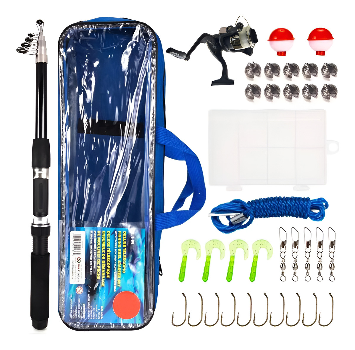 SET DE PESCA CAÑA 2MTS + REEL + ACCESORIOS