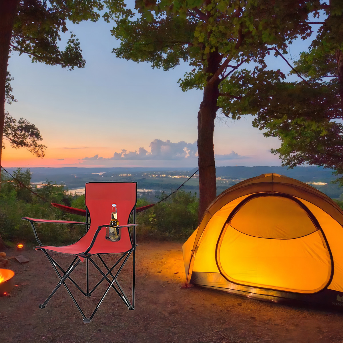 La silla cuenta con un espacio para colocar tu bebida, lo que la hace aún más funcional y cómoda. Soporta un peso máximo de hasta 100KG, gracias a su robusta estructura fabricada en acero y aluminio, materiales conocidos por su resistencia y ligereza.